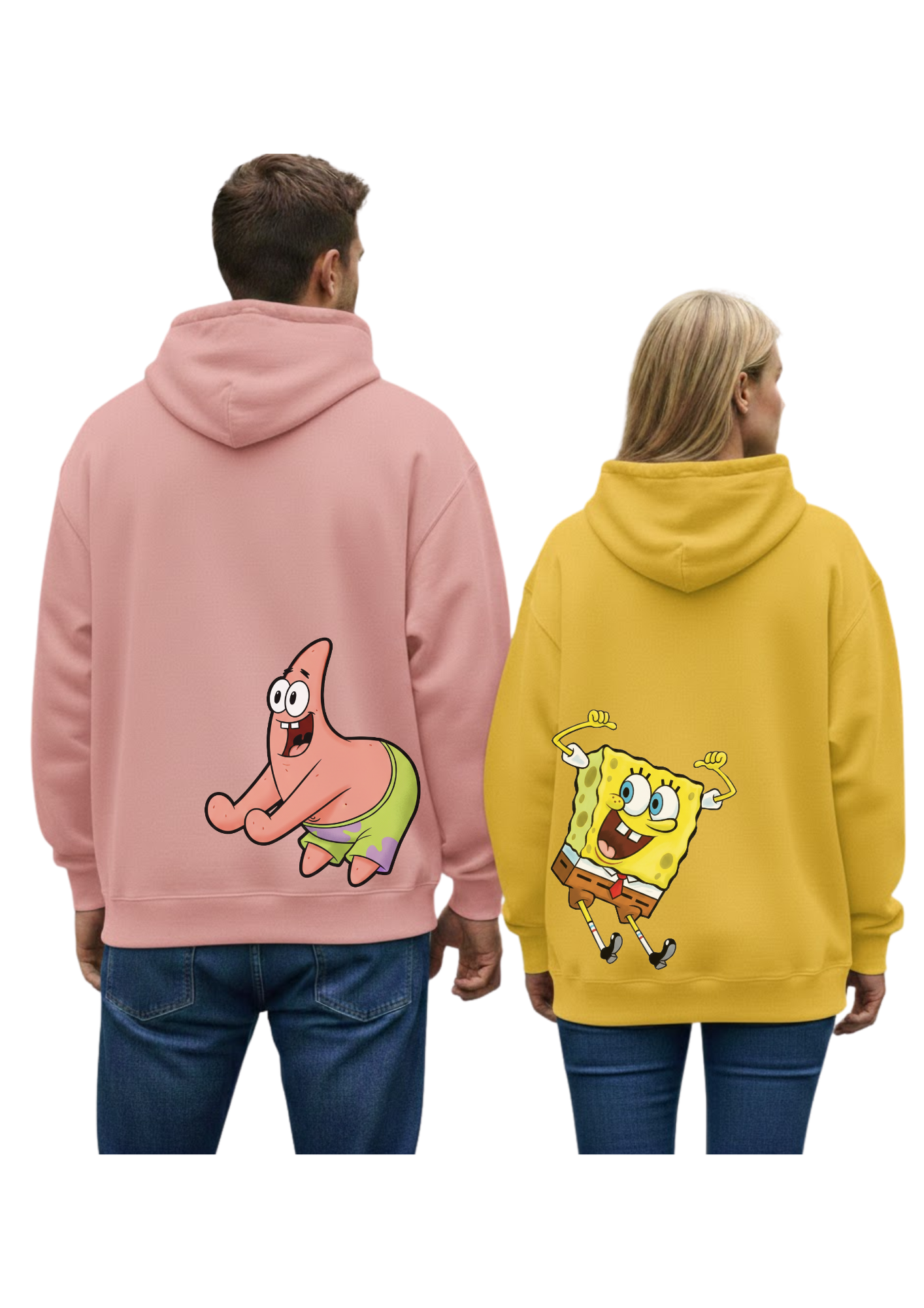Set Felpe di Coppia “SpongeBob & Patrick” โ€“ L’unione fa la… risata! Siete pronti a portare un po’ di allegria sottomarina nel vostro guardaroba? Questo set di due felpe con cappuccio รจ il tributo definitivo alla coppia di amici piรน strampalata e amata della TV. Non sono solo felpe, sono una dichiarazione: insieme siete imbattibili (soprattutto nel fare baldoria!).