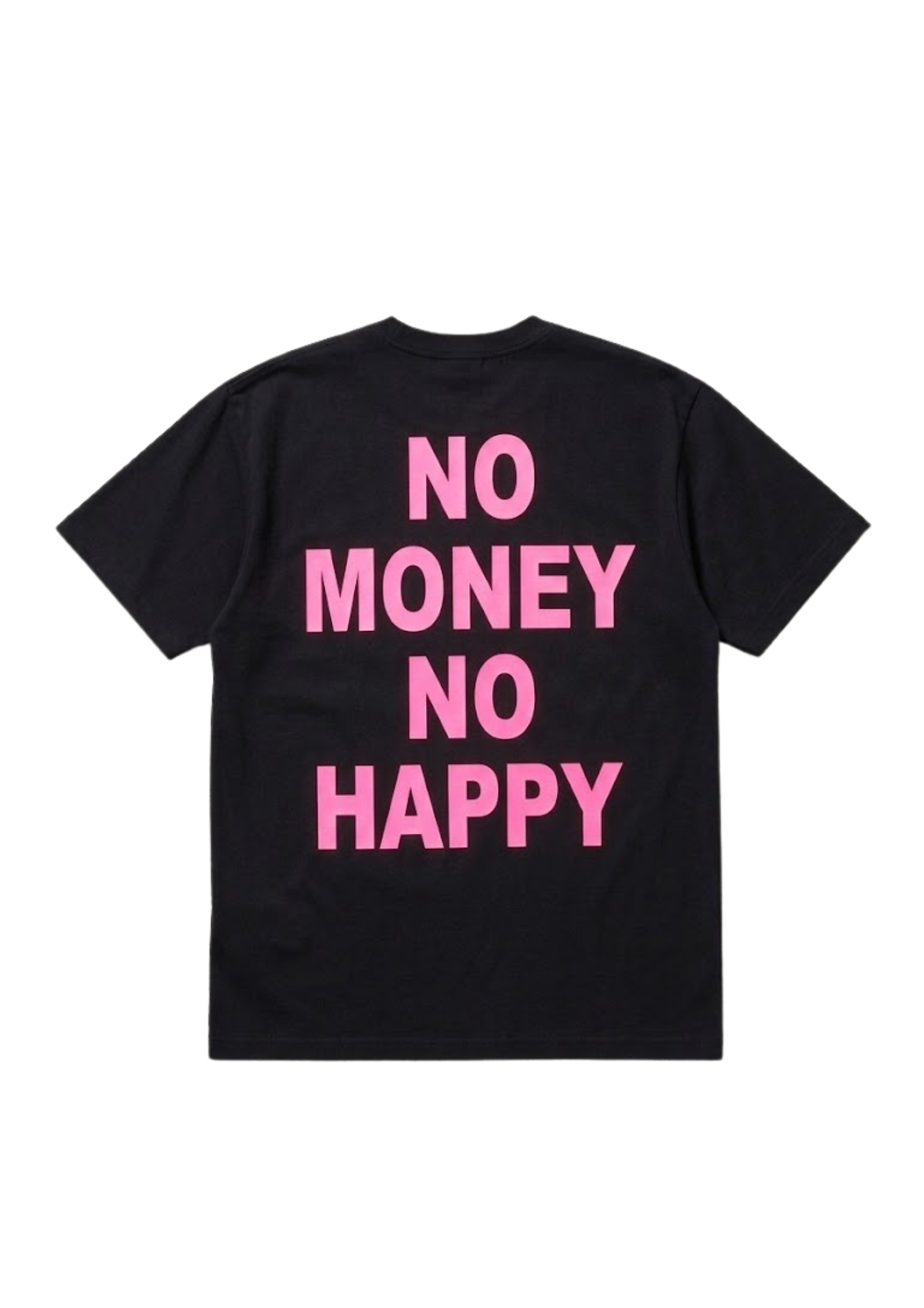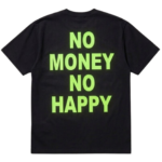 Esprimi il tuo lato audace con la nostra t-shirt cult. Realizzata in cotone nero premium, questa maglia presenta l’iconico claim “NO MONEY NO HAPPY” in colori fluo vibranti (Rosa, Arancio o Verde). Un mix perfetto di ironia street-wear e stile contemporaneo, ideale per chi non vuole passare inosservato.