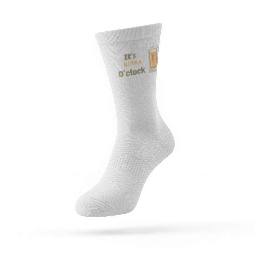 Calze “IT’S BIRRA O’CLOCK” โ€“ Il tuo fuso orario preferito C’รจ chi guarda l’orologio per sapere quando finisce il turno e chi lo guarda per sapere se รจ socialmente accettabile farsi una media. Se appartieni alla seconda categoria, queste calze sono il tuo nuovo accessorio indispensabile. Non รจ solo un paio di calze, รจ una dichiarazione di prioritร : il mondo puรฒ aspettare, la tua birra no.