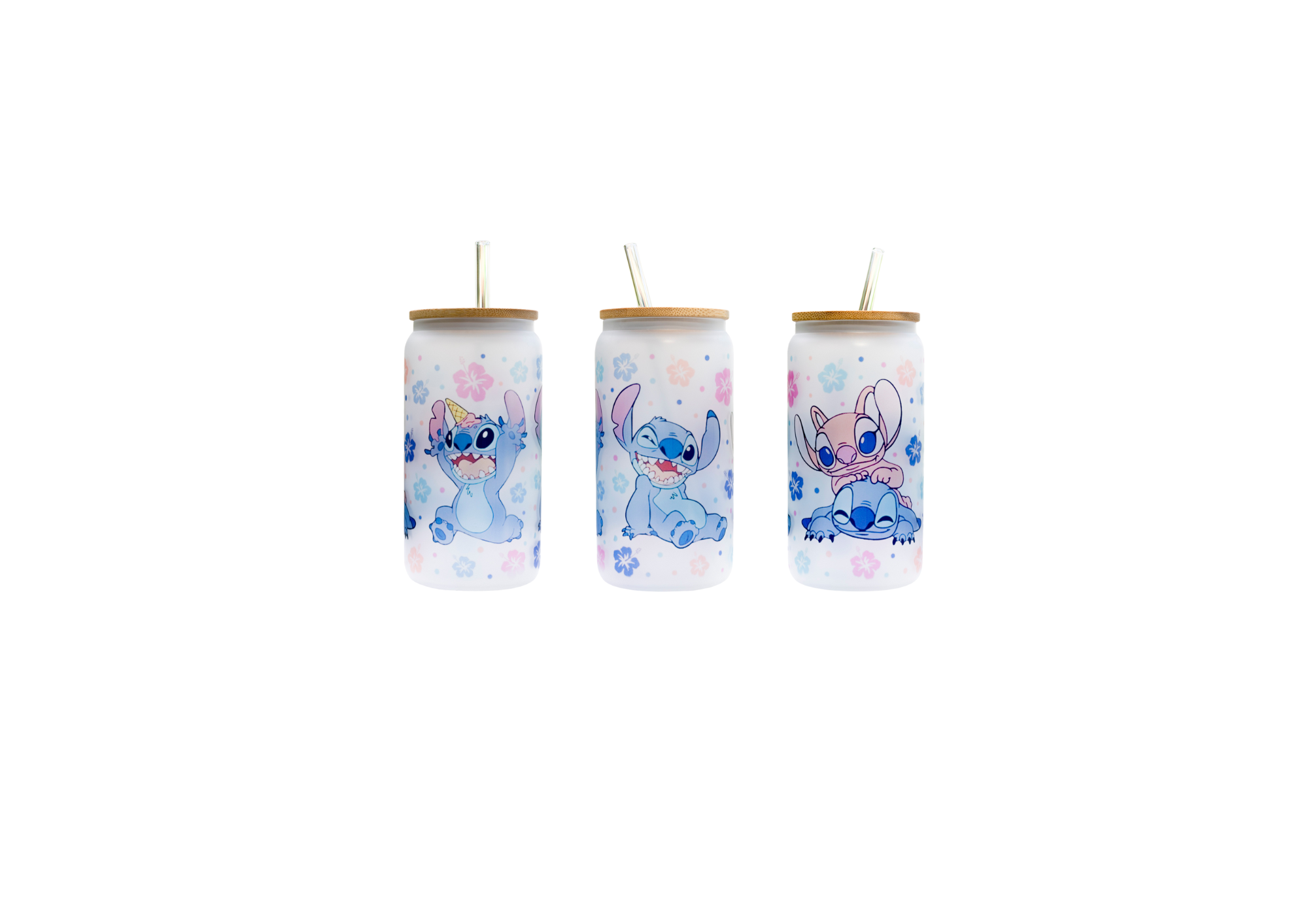 La tua nuova compagna di avventure! Questa tumbler in vetro opaco con cannuccia in vetro e l’adorabile grafica Stitch è perfetta per le tue bevande preferite. Un accessorio di tendenza, ecologico e super cool per ogni momento della giornata.